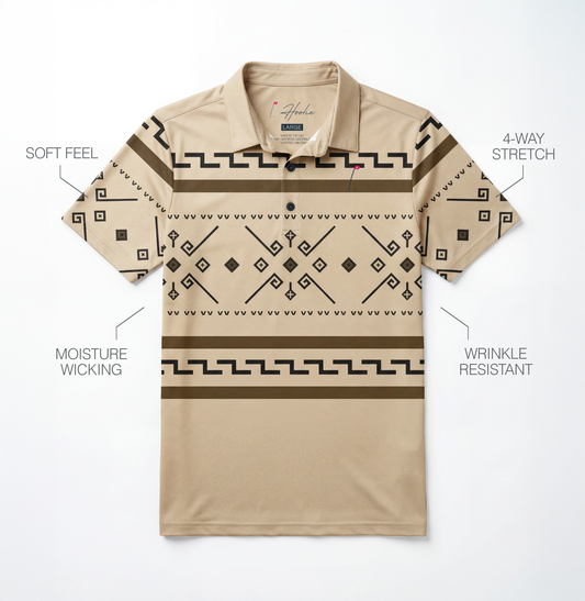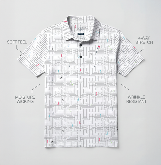 - Performance Printed Polos with 4-way stretch and moisture-wicking fabric for all-day play.