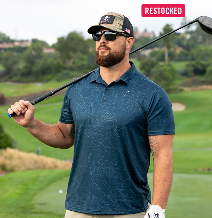 The Hoolie Blue Recce Men's Golf Polo is Hoolie’s #1 bestselling design — a true fan favorite that keeps flying off the shelves. Inspired by military reconnaissance teams, this performance golf polo channels the precision and grit of topographic maps, reimagined for the golf course.